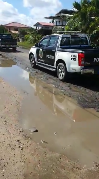 Een burger heeft woensdag 14 juli op Facebook een video geplaatst waarop te zien is, dat een aannemer een deel van de Kwattaweg asfalteert. Niets bijzonders zou men denken. Maar, deze aannemer is aan het asfalteren over vol water staande kuilen in de weg, tot stomme verbazing van de persoon die een en ander gadesloeg en vastlegde op beeld.