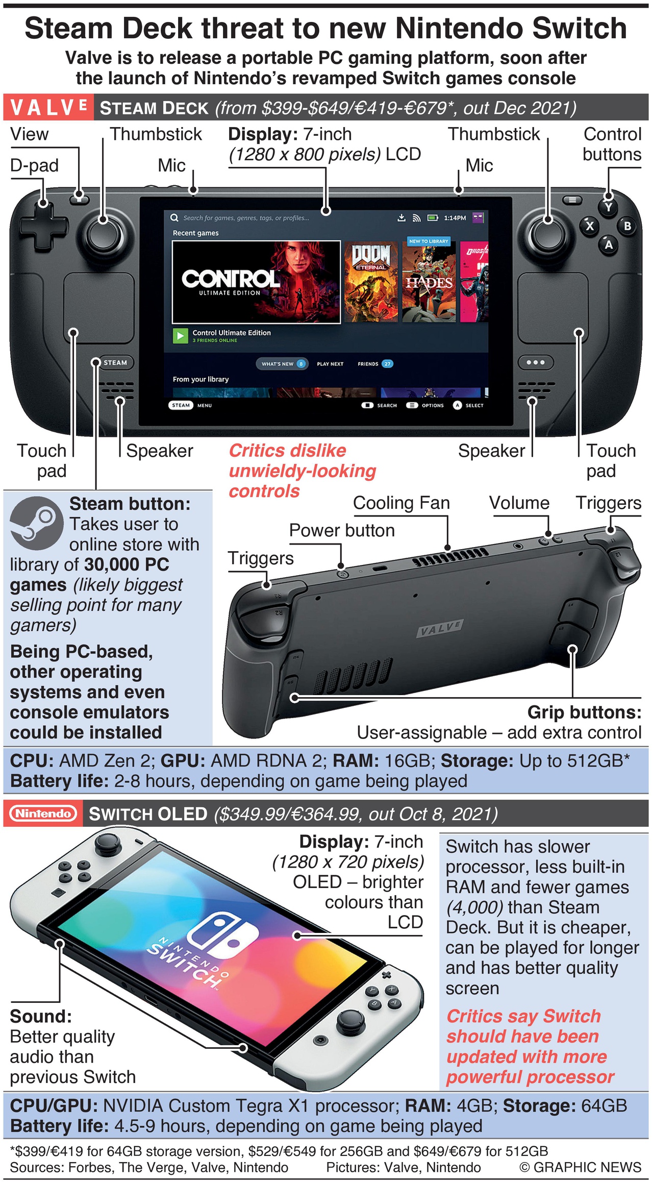 Nintendo’s vernieuwde Switch OLED komt uit in oktober, gevolgd door het Steam Deck in december. Beide zijn beschikbaar voor pre-order en zijn snel uitverkocht.