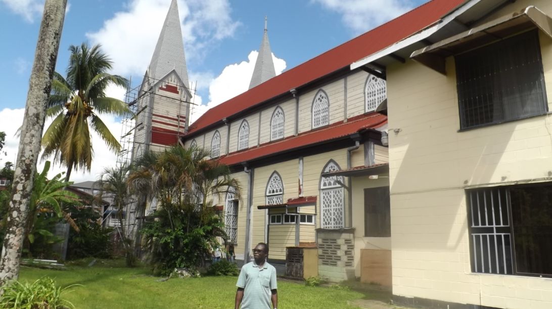De Sint Rosakerk van het Rooms-katholiek Bisdom aan de Prinsenstraat 10 in Paramaribo staat in de steigers. De restauratie vordert langzaam. Parochiepriester Romanus Ebony verwacht, dat het herstel van de kerk en het parochiehuis, dat in de tweede helft van 2020 aanving in het laatste kwartaal van 2021 opgeleverd zullen worden.