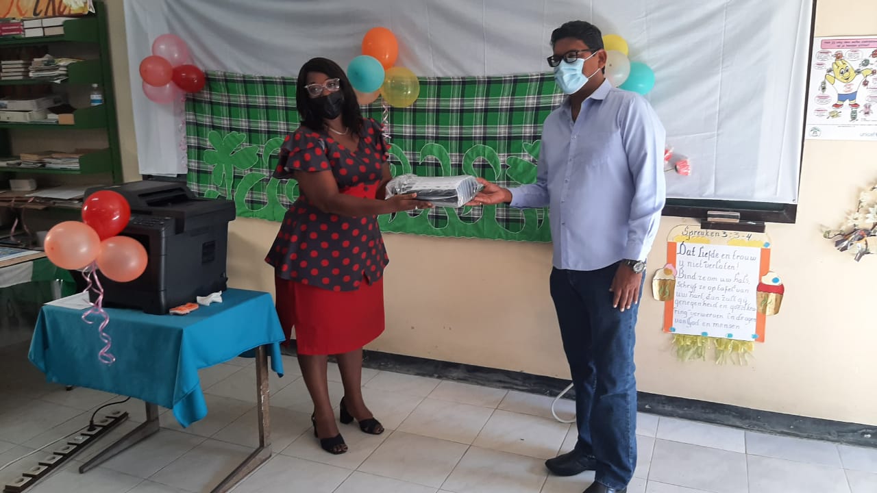 De Stichting Red Su, waar Asiskumar Gajadien (VHP) voorzitter van is, heeft vrijdag 23 juli drie schoolprojecten afgeleverd. Sedert de aanvang van het huidig schooljaar is deze stichting bezig geweest om diverse scholen in het distrikt Wanica en omgeving in verband met de Covid-situatie te helpen om onder andere hun sanitaire voorzieningen te vernieuwen.