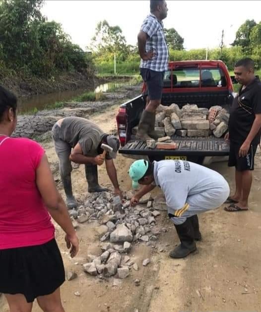 De bewoners aan de Richard van Geenenweg in het ressort Saramaccapolder hebben in samenwerking met de ressortraadsleden het initiatief genomen om de weg te egaliseren en de kuilen te dichten. Zij hebben hiervoor zelf de financiële middelen gecollecteerd.