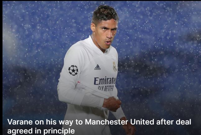 Varane wordt de derde zomeraanwinst van United na doelman Tom Heaton en vleugelspeler Jadon Sancho, waarmee de totale uitgaven van de club op ongeveer £ 108 miljoen komen.