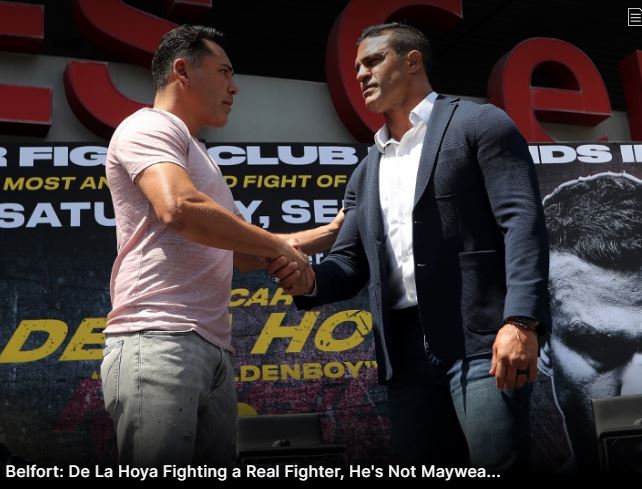 De La Hoya, een wereldkampioen in zes divisies, zal het opnemen tegen Belfort in een gevecht van acht rondes – dat is gepland op een catch-weight van 180 pond.