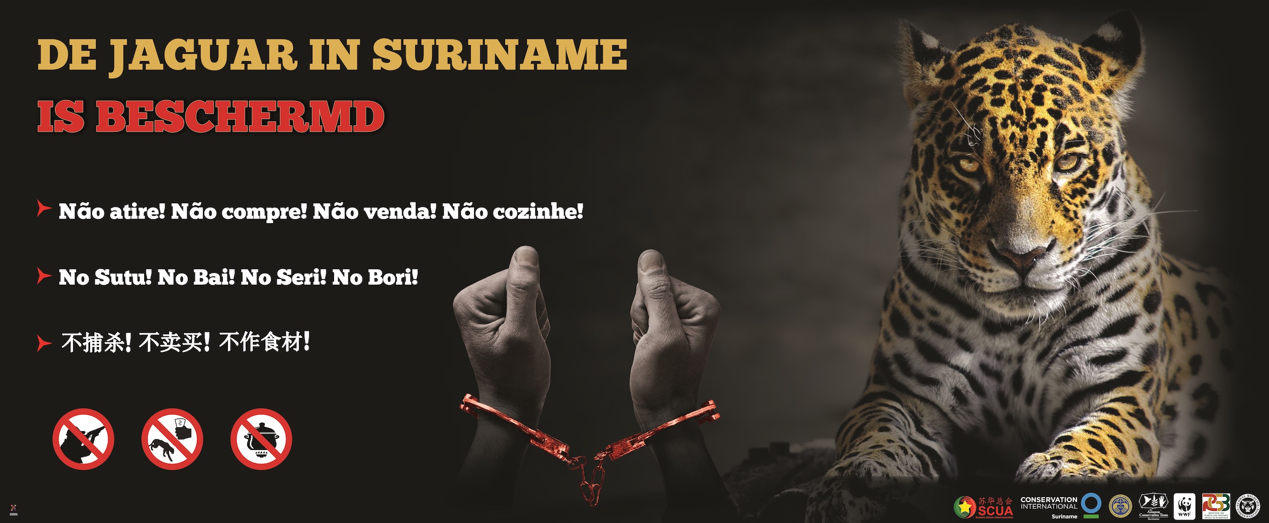 “Al decennia lang is Suriname een van de grootste bronlanden voor de legale en illegale handel in wilde dieren, waaronder beschermde dieren zoals de jaguar.  De afgelopen 5 – 10 jaar neemt het doden, preparen en smokkelen van jaguars en jaguaronderdelen toe met als eindbestemming voornamelijk China”, aldus Els van Lavieren van Conservation International.