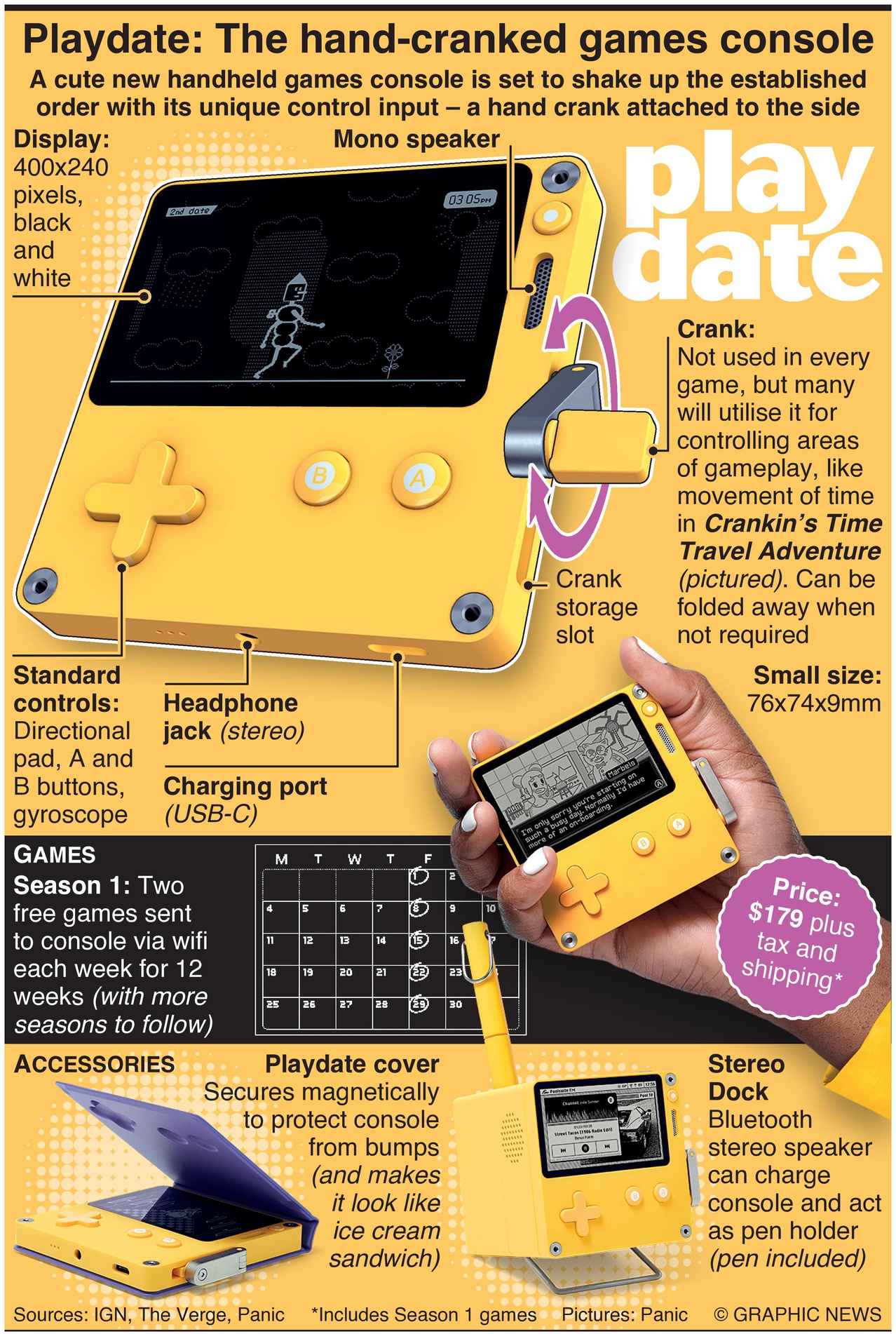 Met zijn vrolijke gele schaal, helder zwart-wit breedbeeldscherm, slinger en batterijduur van acht uur, ligt de nadruk van Playdate zeker op plezier, plezier, plezier.