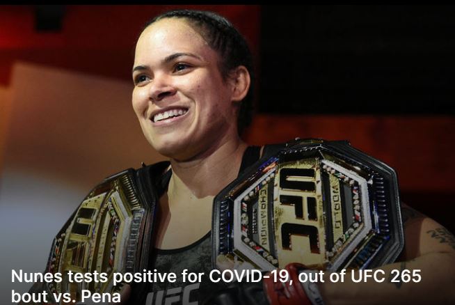 Amanda Nunes is gedwongen zich terug te trekken uit de verdediging van haar bantamgewichttitel voor vrouwen tegen Julianna Pena nadat ze positief had getest op COVID-19, vertelde UFC-topman Hunter Campbell aan Mike Coppinger van ESPN. Het gevecht was gepland als het co-main event van 7 augustus in Houston.