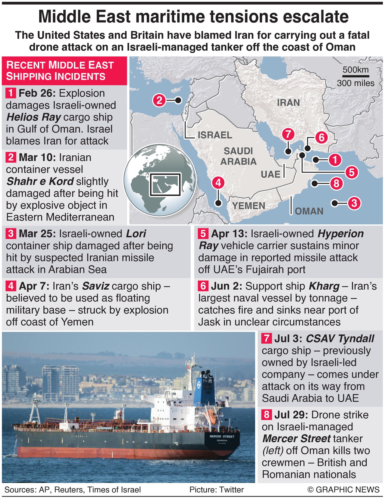 De aanval op de Mercer Street was de eerste bekende dodelijke aanval na jaren van aanvallen op de commerciƫle scheepvaart in de regio in verband met spanningen met Iran over zijn gescheurde nucleaire deal.