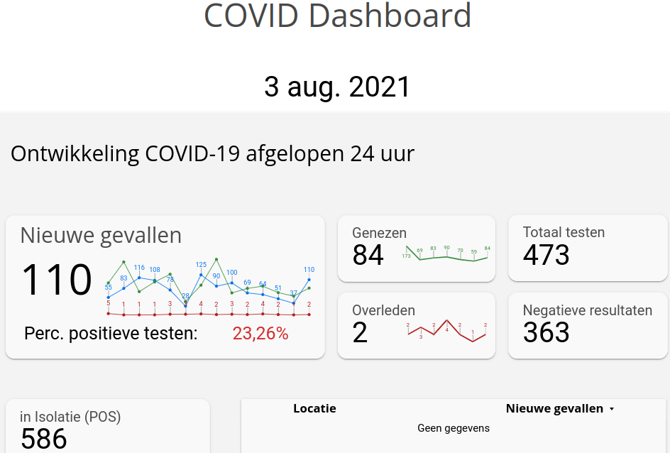 586 Personen bevinden zich dinsdag 3 augustus nog in isolatie.