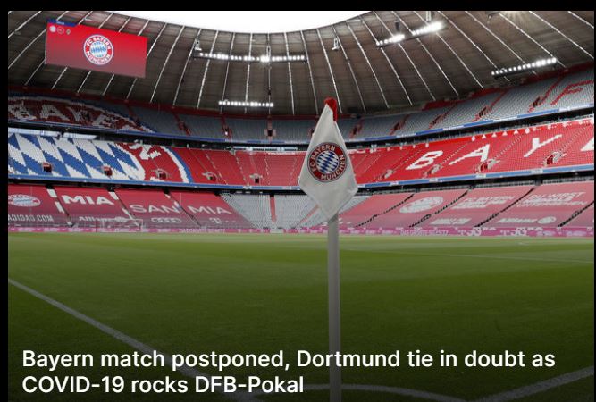 Bayern München heeft vrijdag hun Duitse bekerwedstrijd uitgesteld nadat Covid-19 hun vijfde-tier tegenstanders trof, terwijl er twijfels zijn bij Borussia Dortmund, waar Julian Brandt en Thomas Meunier positief testten op het virus.