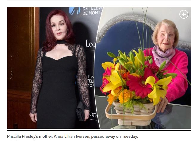 Priscilla Presley maakte bekend dat haar moeder, Anna Lillian Iversen, dinsdag op 95-jarige leeftijd is overleden in een emotionele Instagram-post.