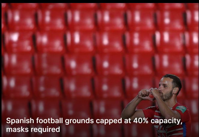 Spaanse voetbalvelden hebben vanwege Covid-19 een limiet van 40% voor bezoekers, waarbij alle fans een masker moeten dragen, zei de minister van Volksgezondheid van het land woensdag.