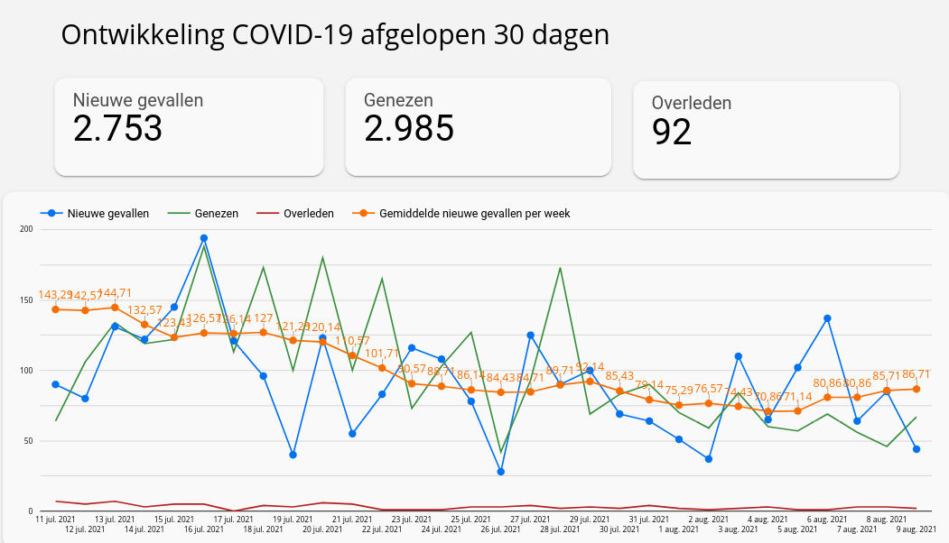 692 Personen zich maandag 9 augustus nog in isolatie.