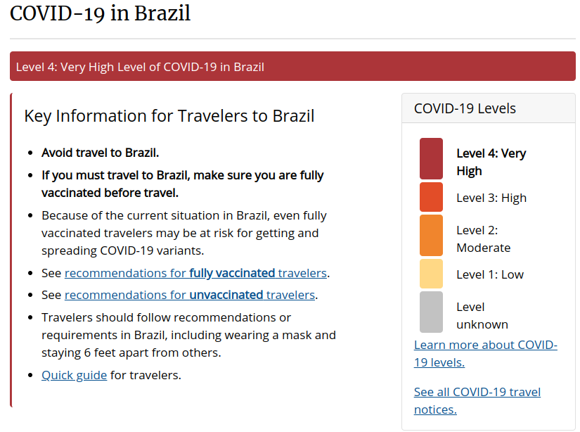 De NDP-politicus benadrukt, dat de Amerikaanse CDC (Centers for Disease Control and Prevention) een negatief reisadvies voor Brazilië geeft (zie onderaan), “maar wij gooien de grenzen open”. “Misschien vindt de minister dat er niet genoeg Manaus-variant hier is. Ik heb die vragen ook in de Assemblee gesteld, maar de minister geeft geen duidelijk antwoord.”