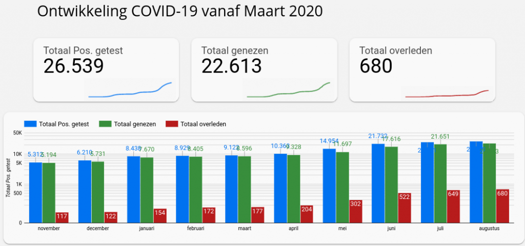 Het totaal aantal met Covid-19 besmette personen, sinds de uitbraak medio maart 2020, bedraagt nu 26.539.