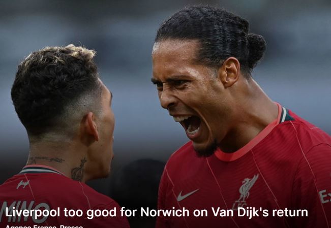 Virgil van Dijk maakte een winnende terugkeer van een blessure toen Liverpool de 3-0 zege op Norwich maakte om hun Premier League-seizoen op zaterdag te openen.