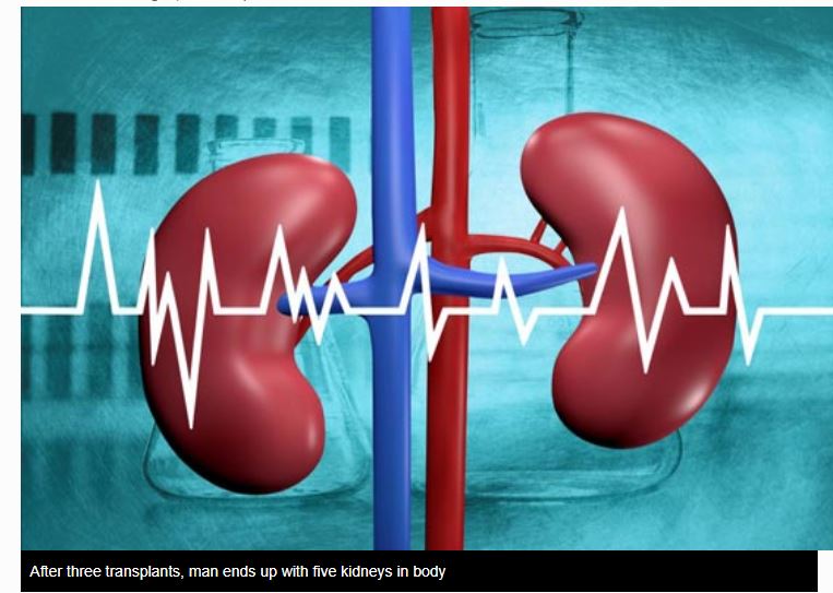 Een man met ernstige hypertensie onderging een derde niertransplantatie bij de Madras Medical Mission in India en heeft nu vijf nieren in zijn lichaam.