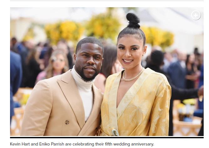 Kevin Hart en zijn vrouw Eniko Parrish vierden hun vijfde huwelijksverjaardag met gulle Instagram-eerbetoon aan elkaar op vrijdag.