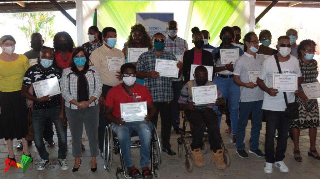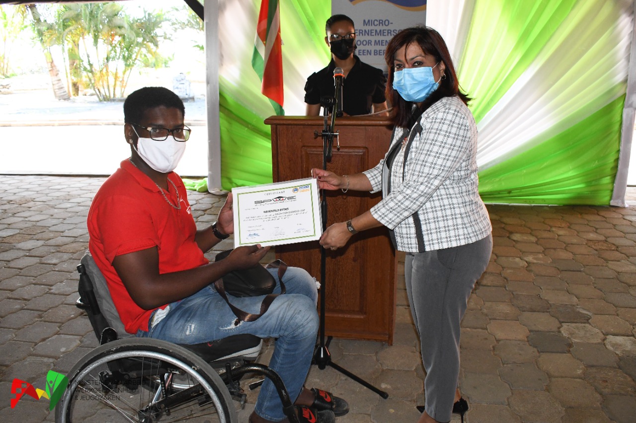 De Stichting Productieve Werkeenheden (SPWE), een werkarm van het ministerie van Arbeid, Werkgelegenheid en Jeugdzaken (AW&J), heeft vrijdag 13 augustus weer in het kader van het Basic Needs Trust Fund project ‘Micro-ondernemerschap voor mensen met een beperking’ de certificaten kunnen uitreiken aan de geslaagde trainees.