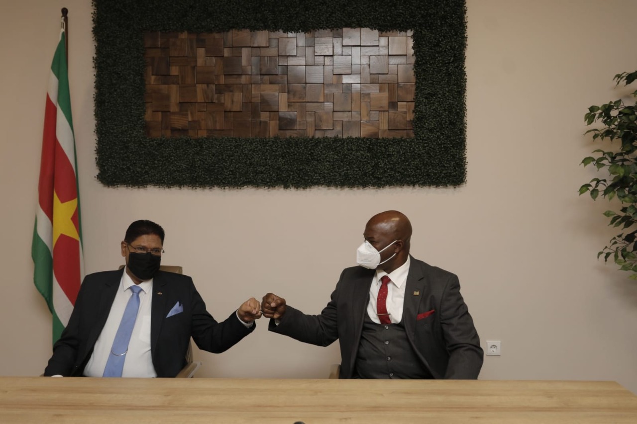 President Santokhi en vicepresident Brunswijk tekenden dinsdag 17 augustus vóór vertrek van Santokhi naar Guyana het protocol van overdracht op de Johan Adolf Pengelluchthaven.