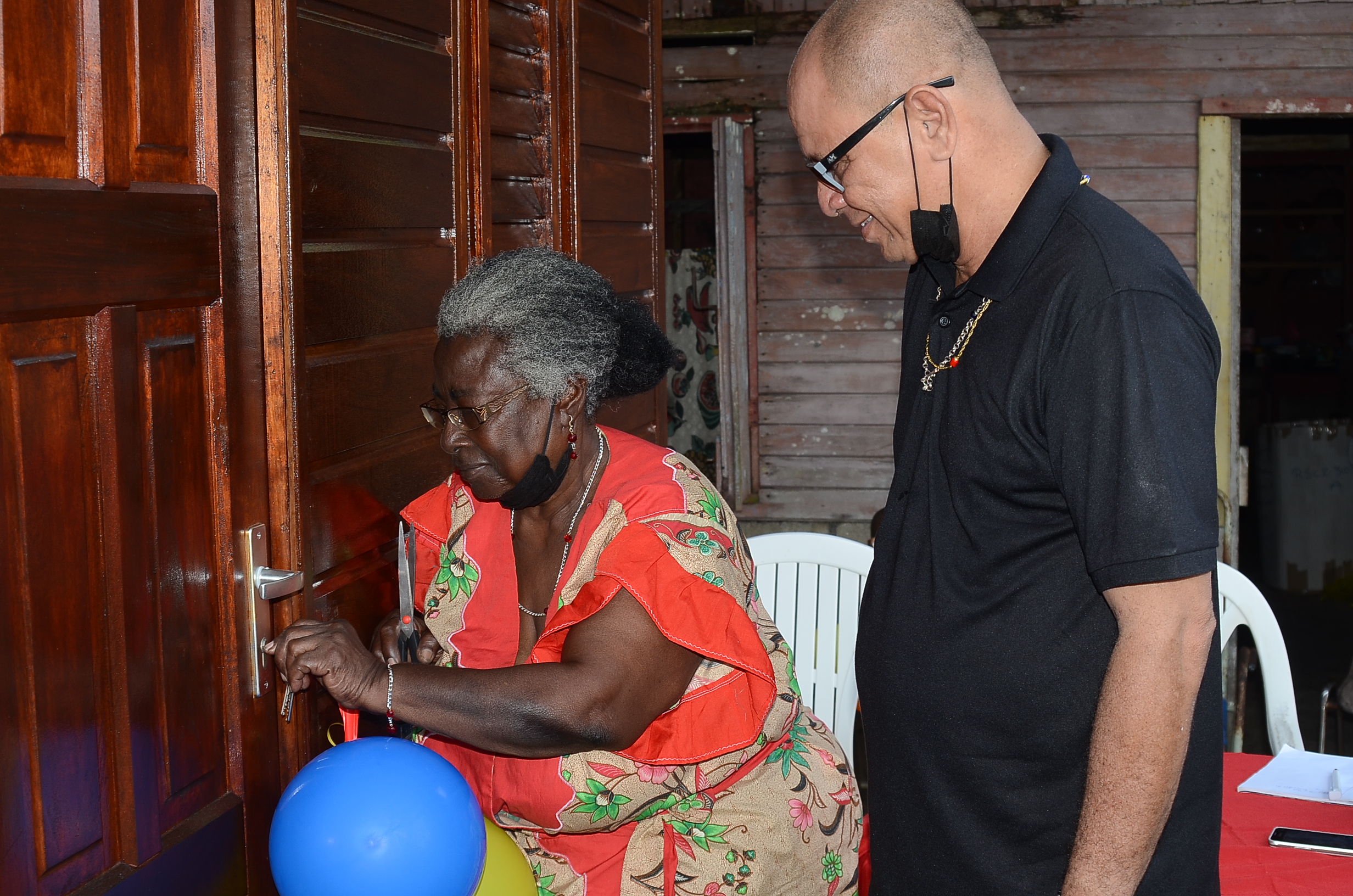 Met een dankwoord aan de almachtige zijn de sleutels van twee splinternieuwe woningen woensdag 18 augustus door de voorzitter van Stichting 1 voor 12, Louis Vismale, overhandigd aan oma Cornelia King en de 79-jarige heer Peters. De woningen zijn binnen anderhalve maand afgebouwd.