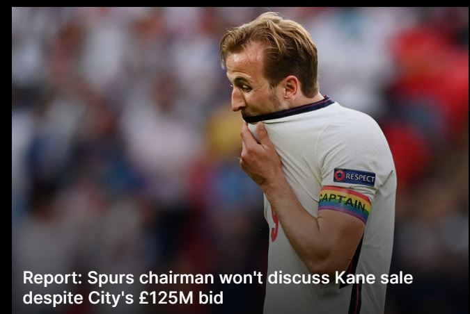 Tottenham Hotspur-voorzitter Daniel Levy neemt geen telefoontjes aan om de verkoop van Harry Kane te bespreken, ondanks dat Manchester City 125 miljoen pond heeft geboden voor de spits, volgens Jason Burt van The Telegraph.