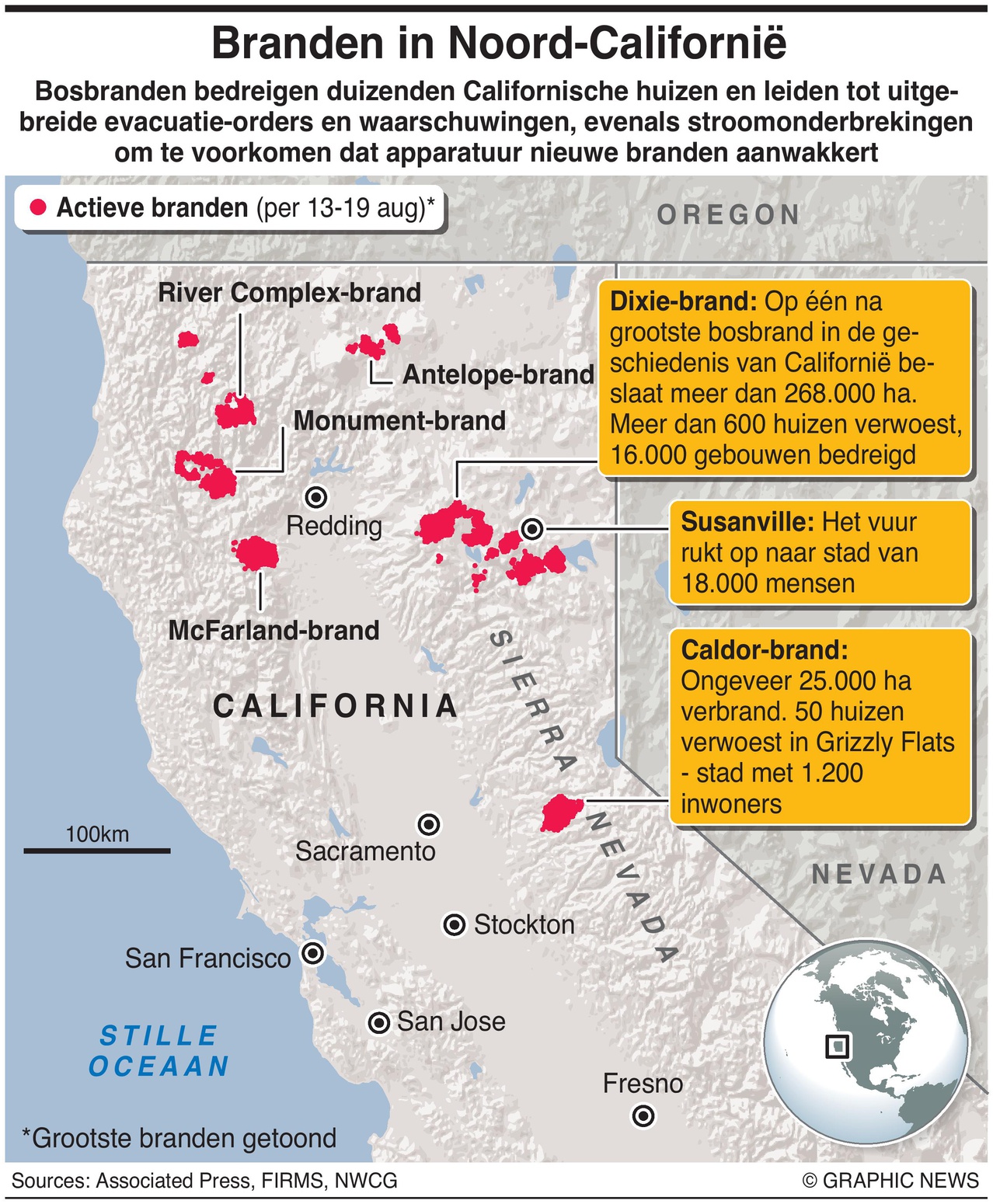 Het Dixie-vuur is het eerste dat van oost naar west is gebrand over de ruggengraat van Californië, waar de Sierra Nevada en de Cascade-bergen samenkomen. Het had meer dan 2.500 vierkante kilometer (1.000 vierkante mijl) verbrand en was slechts een derde bevatte, zei AP