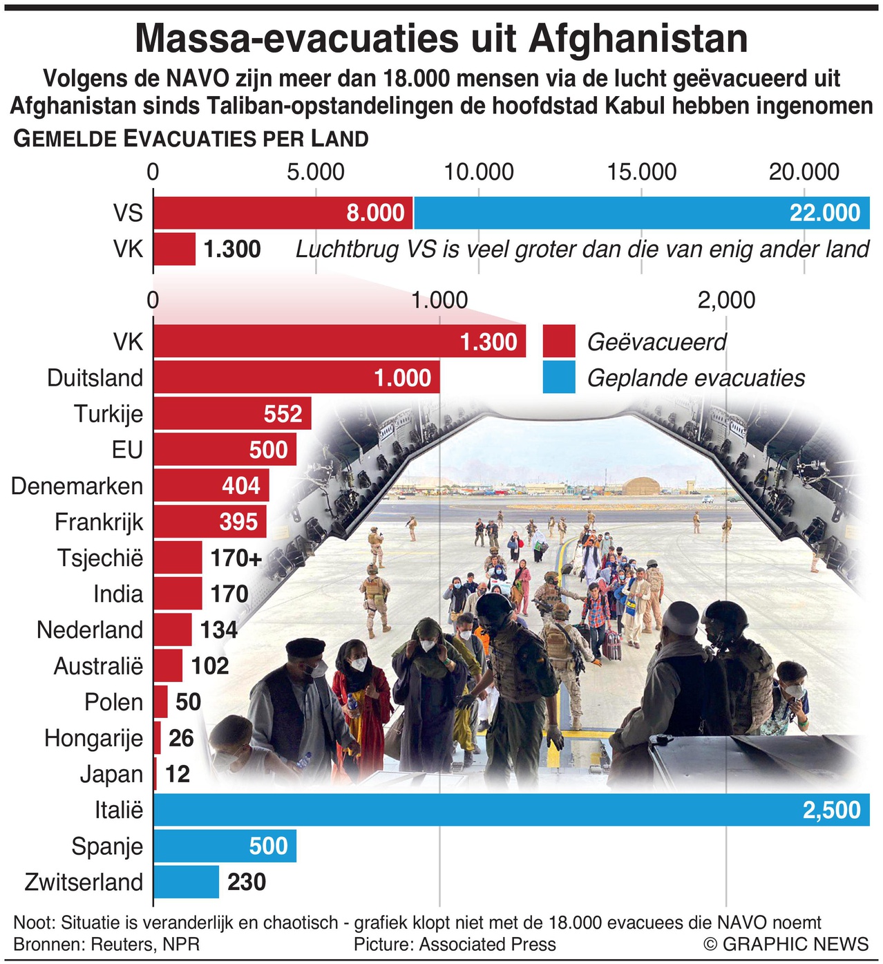 De NAVO beweert dat meer dan 18.000 mensen uit Afghanistan zijn gevlogen sinds de hoofdstad Kabul, op 15 augustus onder controle van de Taliban kwam.