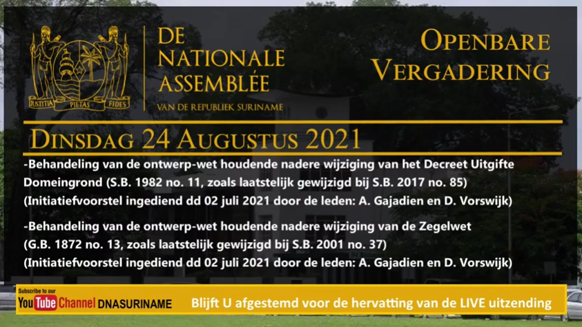 Initiatiefnemer voor de wetswijzigingen, Gajadien, voerde aan dat het initiatief is ingegeven door het maatschappelijk probleem van boedel en de vele moeilijkheden binnen families om grond te verdelen en over te dragen. De hoge overdrachtskosten is er één van. Er moet volgens hem rechtszekerheid worden geboden aan de mensen. Gajadien zegt na de vele op- en aanmerkingen te hebben aangehoord, wijzigingen te zullen aanbrengen in zijn wetsvoorstel. Vandaag, donderdag 26 augustus, worden de debatten in het parlement voortgezet. De regering zal dan aan het woord komen.