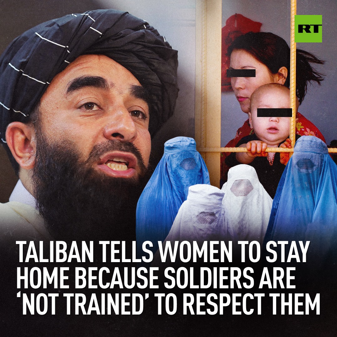 Tijdens een persconferentie liet Taliban-woordvoerder Zabiullah Mujahid de vrouwen van Afghanistan weten dat ze thuis moesten blijven en niet veilig waren in het bijzijn van de soldaten van de militante groepering.