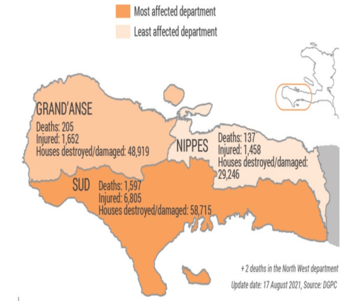 De dodencijfers zullen zonder de minste twijfel nog stijgen omdat ontelbare ruïnes nog moeten geruimd worden. Ongeveer 500.000 Haïtianen – 40 procent van de bevolking van het zuidwestelijke schiereiland hebben dringend humanitaire hulp nodig voor huisvesting, voeding en medische verzorging. Hospitalen hebben dringend verband, ontsmettingsproducten, operatiemateriaal, verdovingsproducten, bloed en bloedtransfusiemateriaal nodig.