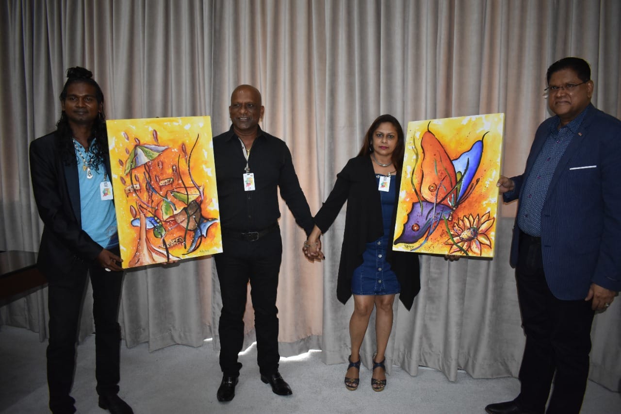 De Surinaamse kunstenaar Anand Dwarka heeft afgelopen weekend door hem gemaakte schilderijen mogen overhandigen aan president Chandrikapersad Santokhi.