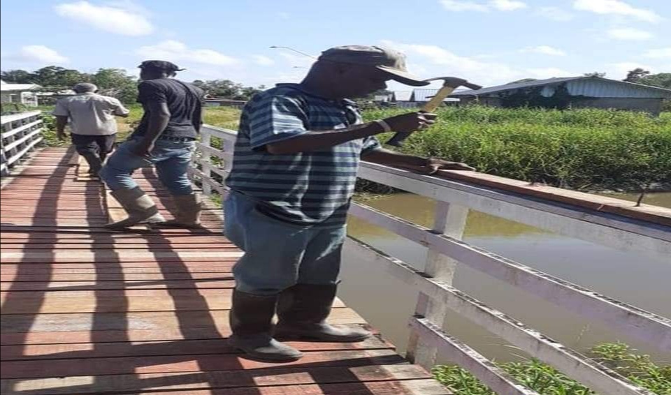 Veldwerkers van het ressort Koewarasan in het district Wanica hebben de brug tussen de Organza- en de Zuurzakweg hersteld. De middelen zijn gedoneerd door Houtmarkt Mannising en Winkel Jadoenath.