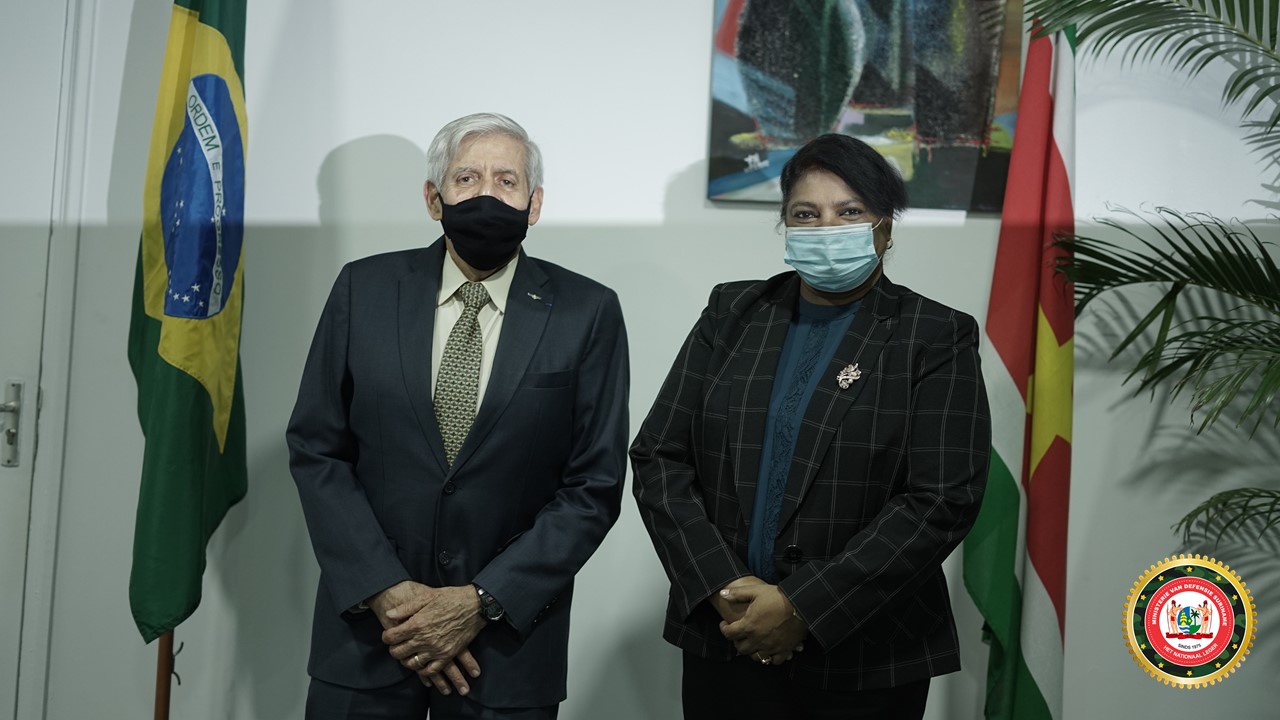 Afgelopen maand is ook de nieuwe Braziliaanse ambassadeur, Raphael Azeredo, op bezoek geweest bij de minister. Tijdens dit bezoek heeft de diplomaat namens zijn regering ongeveer 16 trainingsplaatsen aangeboden aan Defensie Suriname. “Defensiesamenwerking is heel erg belangrijk, omdat wij in een wereld leven die onvoorspelbaar is. Dat heeft Covid-19 al bewezen. Dus de uitdagingen, dreigingen en risico’s zijn anders”, aldus de minister.
