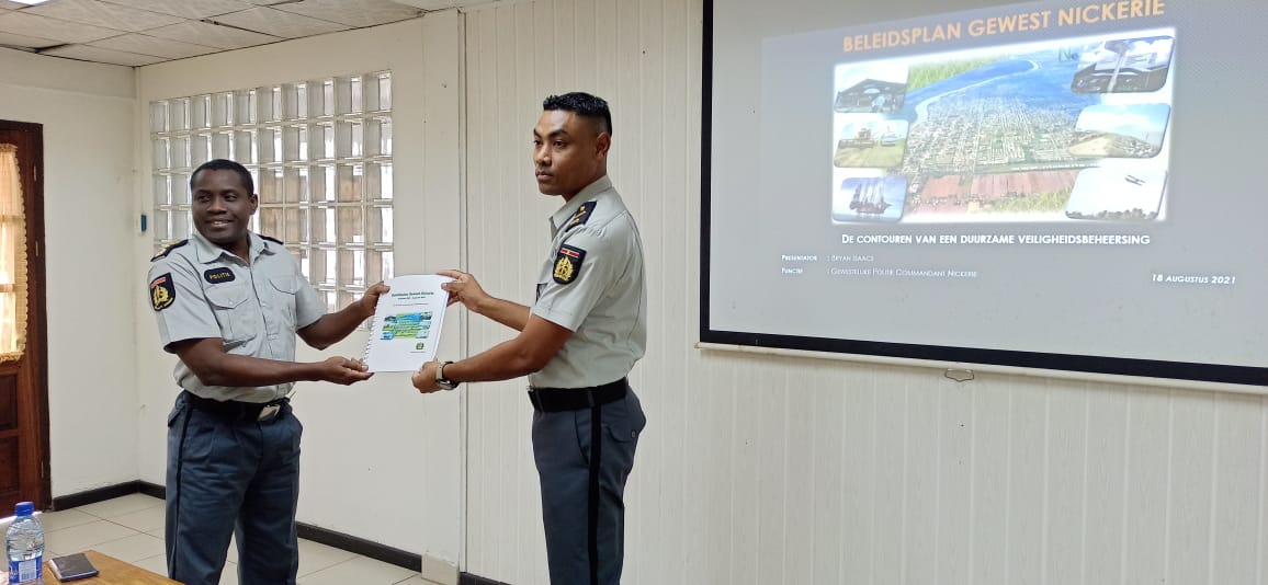 De Gewestelijke Politie Commandant (GPC) van Nickerie, hoofdinspecteur van politie Bryan Isaacs, heeft woensdag 18 augustus het concept Beleidsplan van het Gewest Nickerie (augustus 2021 – augustus 2023), aangeboden aan de Korpschef, hoofdcommissaris van politie mr. Roberto Prade. Dit bericht het korps pas vrijdag 3 september.