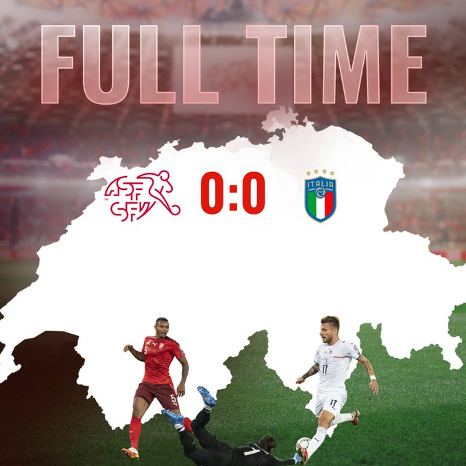 Na de teleurstellende 1-1 in Bulgarije was Italië uit op een zege in Zwitserland. De Europese kampioen dwong ook de beste kansen af, maar scoren lukte niet in de Zwitserse stad Bazel.