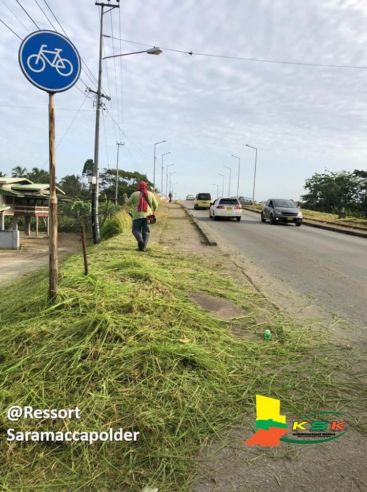 In het ressort Saramaccapolder zijn onderhoudswerkzaamheden verricht langs de oprit van de brug en de rotonde van de Magentakanaalweg en de Commissaris Weythingweg. Ook zijn de straathoeken gemaaid van de Soekadoedoekweg / Commissaris Weythingweg, de Soekaredjoweg / Soekadoedoekweg, Leiding 11 / Menckebergstraat en de Wanicaweg / Leiding 11.