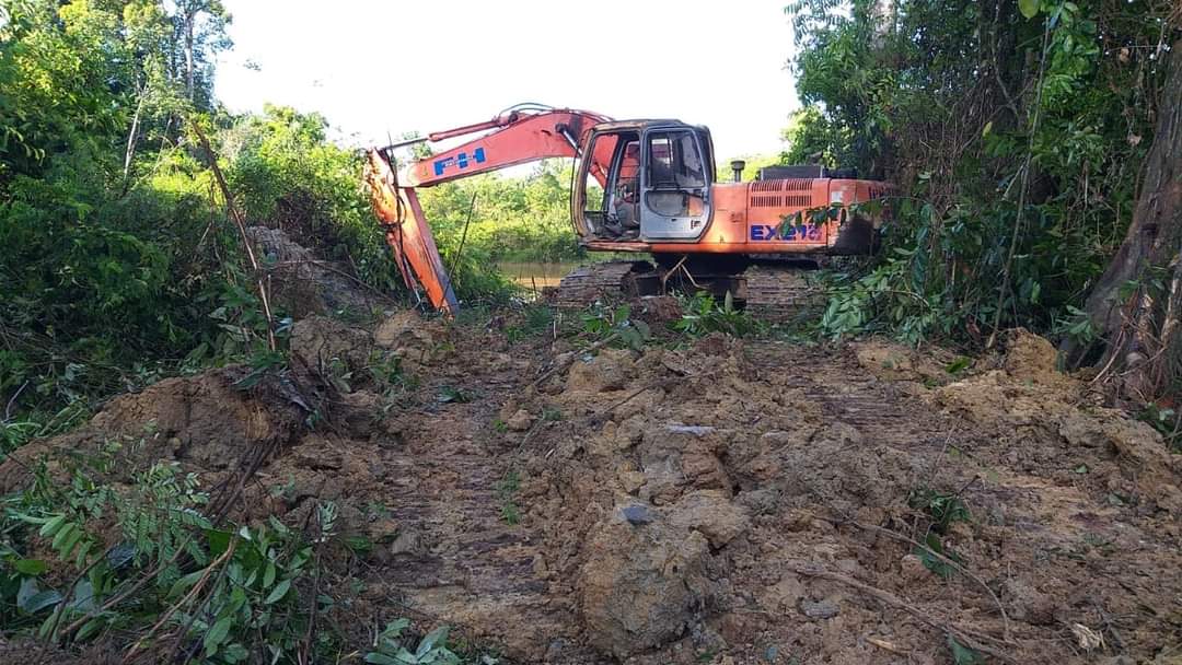 Deze kreek wordt nu in deze droge tijd momenteel opgeschoond. De goudwinningsactiviteiten zijn gestopt.