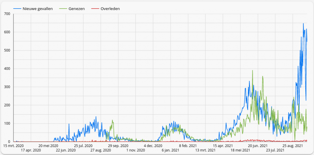 Volgens de Covid-19 dashboard zijn 5.515 personen dinsdag 21 september in isolatie.