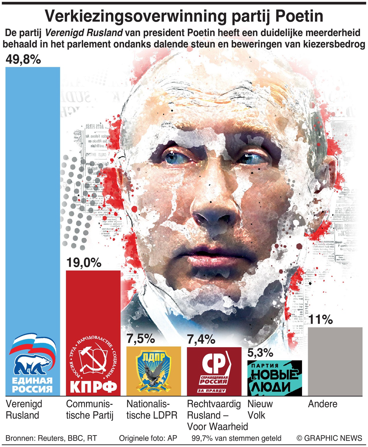 De Russische regeringspartij Verenigd Rusland heeft zoals verwacht de parlementsverkiezingen gewonnen. Dat heeft de Centrale Kiescommissie gisterenavond bekendgemaakt.