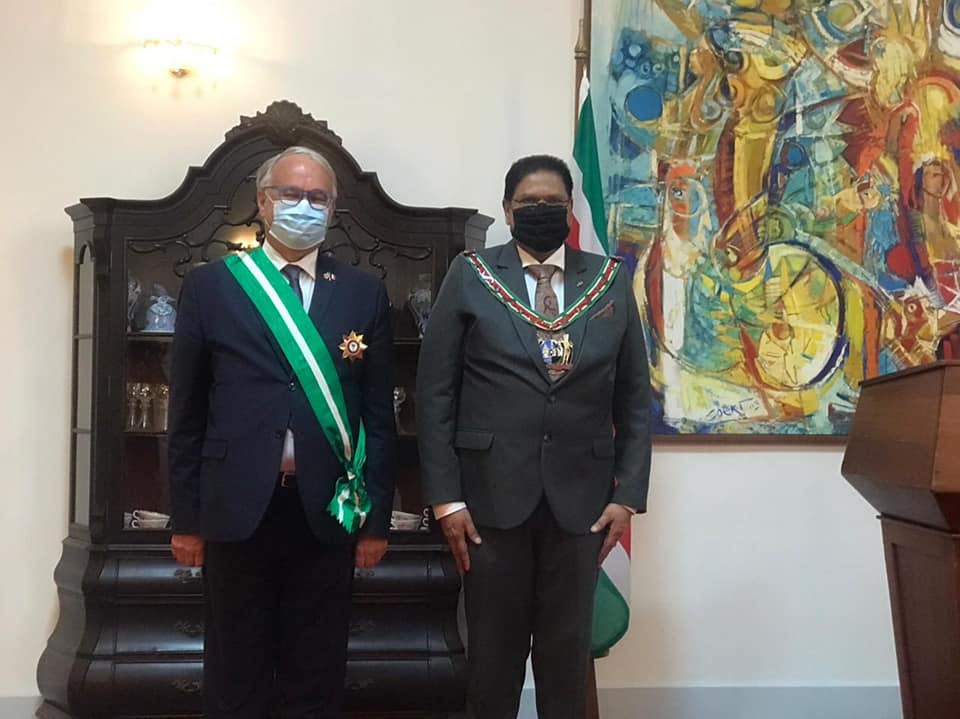 Hieronder de tekst van de afscheidstoespraak van de heer Antoine Joly, vertrekkend ambassadeur van Frankrijk in Suriname, vandaag, dinsdag 5 oktober, uitgesproken bij de ontvangst uit handen van president Chandrikapersad Santokhi van de Orde van de Gouden Palm: