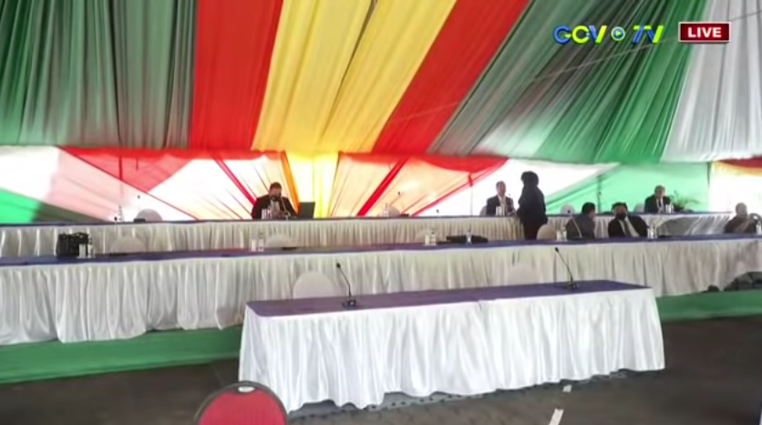 Deze keer vond overigens de persconferentie plaats in een grote tent, op het heetst van de dag, zo leek het. De hitte droop van de gezichten van de aanwezigen af, ook van het gezicht van president Santokhi die niet wist hoe snel hij weer een doekje moest pakken om het gezicht wat te deppen, te ontdoen van het druipende zweet. Tegen de hitte van de afgelopen dagen is ook geen ventilator bestand, ook niet in die tent. Hitte leidt ook snel tot irritaties en daar was maandag ook niet aan te ontkomen in die tent. Kortom, hoe heeft de organisatie van deze persconferentie het in zijn of haar hoofd gehaald om die te houden in een tent vanaf elf uur in de ochtend? Maar, dat was niet het enige waaruit het bedenkelijke niveau van de organisatie bleek.