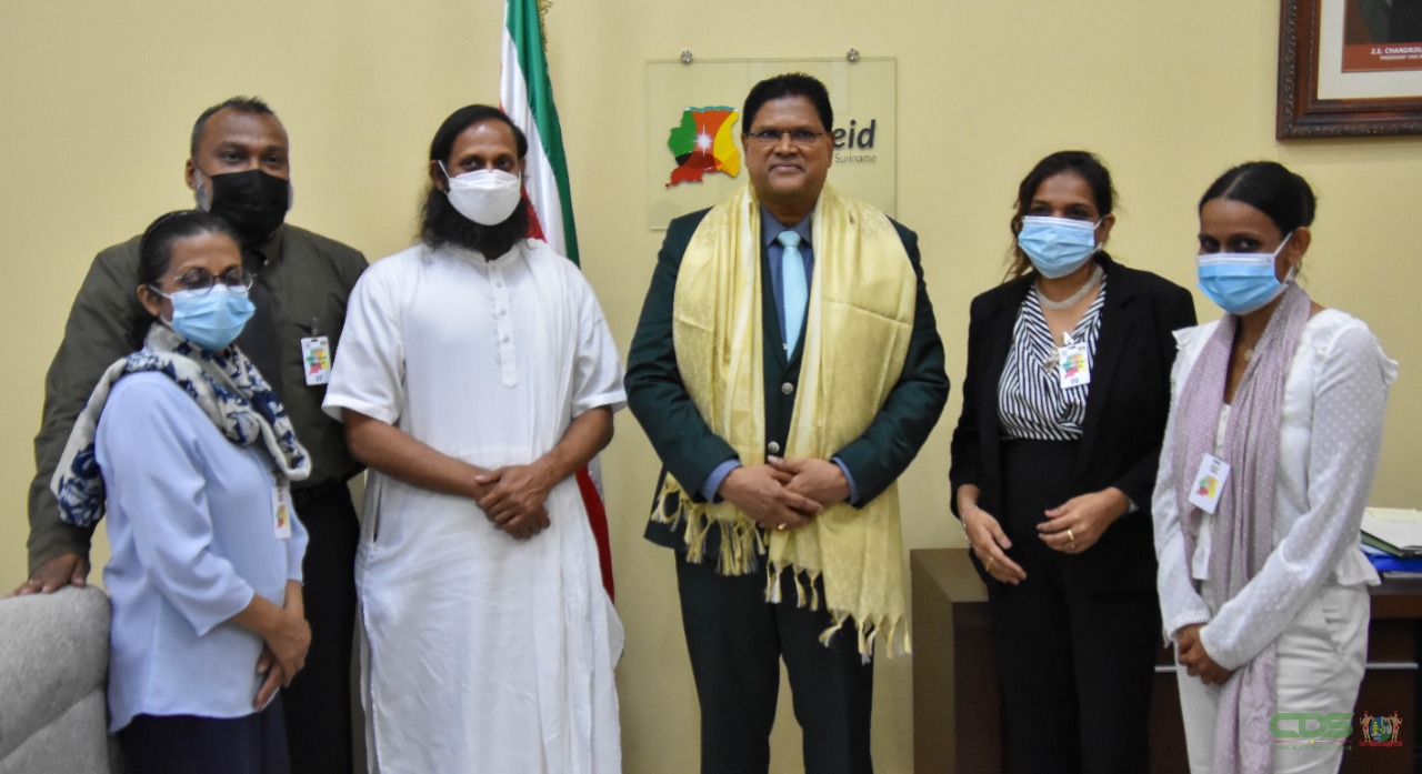 President Santokhi ontving vorig jaar na zijn beëdiging via een videoconferentie de zegeningen van Sri Sri Ravi Shankar, oprichter en spiritueel wereldleider van de Art of Living Foundation. Swami Paramtej heeft het staatshoofd ook persoonlijk gefeliciteerd met diens presidentschap.
