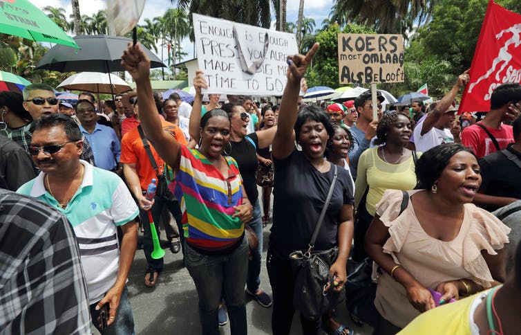 Al de protesten gaan over geld, armoede. Wanneer echter fatsoen, waarden en normen met de voeten worden getreden, wordt er niet geprotesteerd. Bijvoorbeeld de benoeming van de ex-president en recent nog van de huidige vp. Men weet dat de naam van Suriname nationaal en internationaal te grabbel wordt gegooid als een crimineel zo’n belangrijke positie claimt, echter geen woord van protest van het volk. Nog een voorbeeld is de benoeming van Leo Brunswijk en de manier waarop na een goede verdeling van de posten, de ABOP terugkwam en de posten die de NPS waren toegewezen, opeiste en ze ook nog kreeg. Zo vinden er nog vele handelingen plaats die niet getuigen van fatsoen en integer gedrag. Echter geen woord van protest als onze normen en waarden in het gedrang zijn. Dat betekent dat men meer waarde hecht aan geld en materiele dingen dan aan fatsoen.