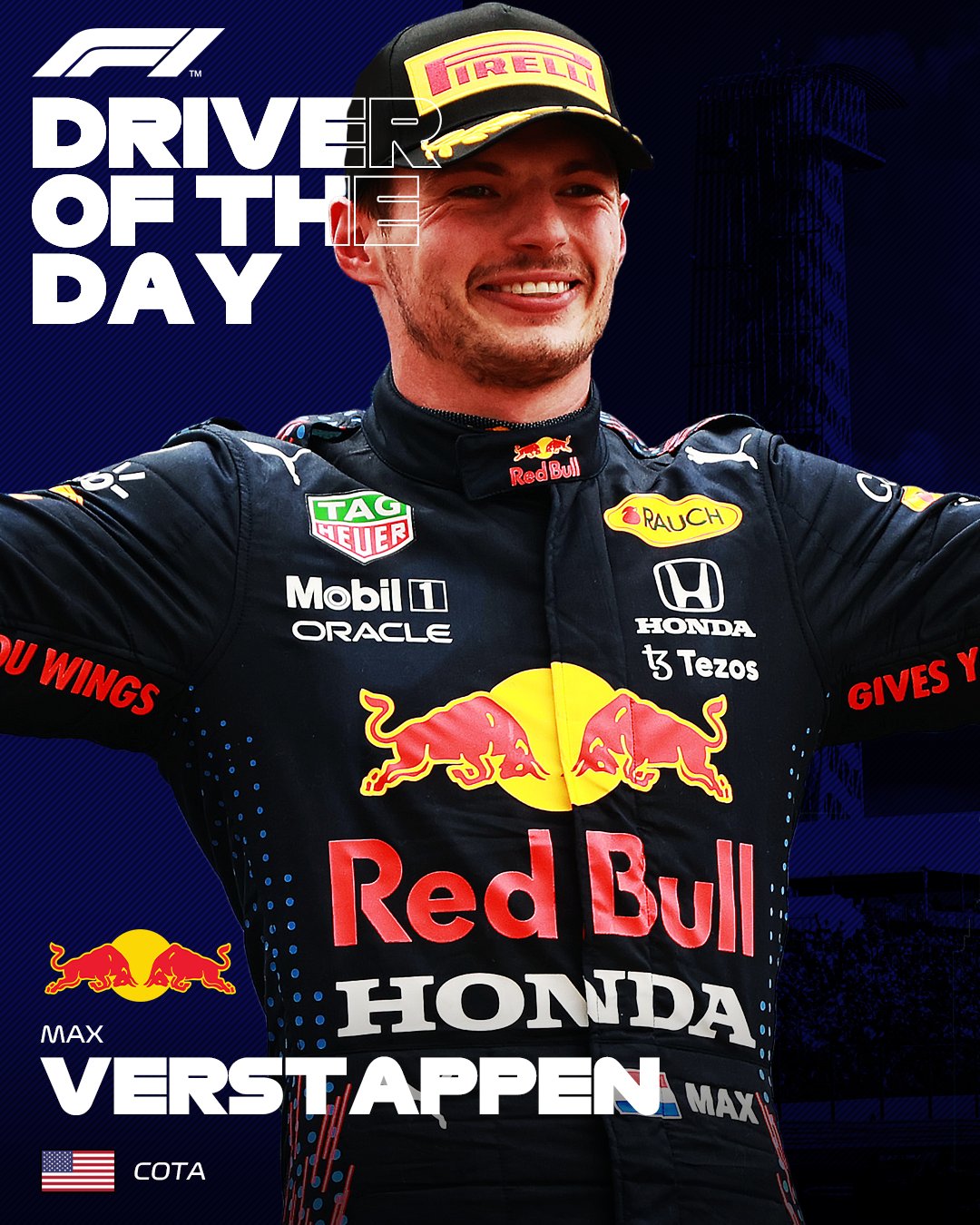 Behalve de pole positie en de winst, werd Max z’n achtste overwinning van het seizoen 2021 dus ook nog bekroond met de titel Driver of the Day.