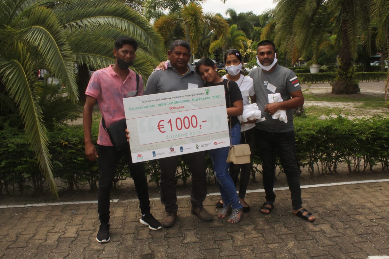 De vertegenwoordiger van de Nederlandse ambassade noemde ook de spannende en uitdagende tijden voor de Surinaamse agrosector, maar haalde ook de steeds groeiende wereldbevolking aan die van landbouwers vraagt dat deze meegaan met innovatieve ontwikkelingen. Zo’n ondernemer is George Karan. “Ik ben een fulltime landbouwer samen met mijn zoon en acht arbeiders” zegt Karan. De landbouwer verbouwt verschillende gewassen gedurende het jaar zoals tomaat, boulanger, antroewa, pepersoorten en banaan. Afgelopen zaterdag kwam Karan als winnaar uit de bus. Wekelijks oogst deze landbouwer 5 tot 7 ton groenten zowel voor de lokale als exportmarkt.  Â
