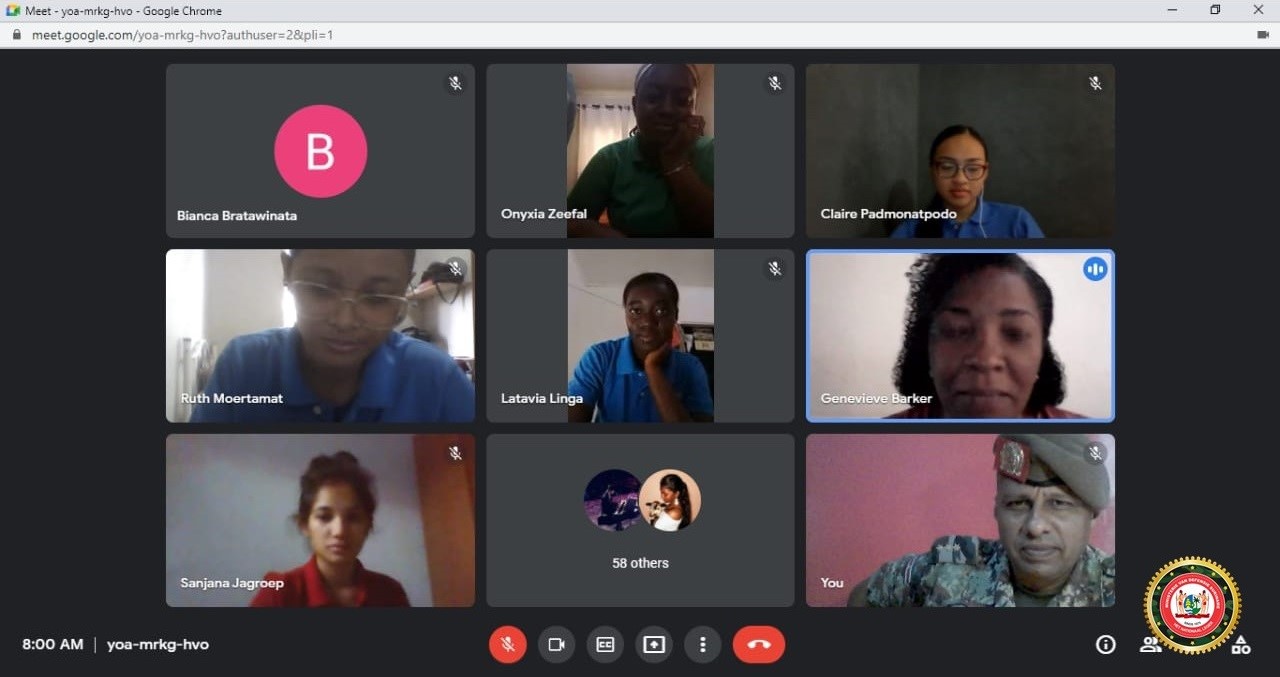 “Onze generatie mag niet ten prooi vallen aan ellende en wanhoop.” Dat zei kapitein Shyam Manniesingh van het bureau Civiel-Militaire Relaties (Cimir) dinsdag tijdens een virtuele motivatiesessie voor studenten van de examenklas van het Mr. Dr. J. C. de Miranda Lyceum. Militairen zijn voorbeeldfiguren en het boegbeeld van vaderlandsliefde, discipline, beschermer en dienaar van land en volk, aldus het ministerie van Defensie.