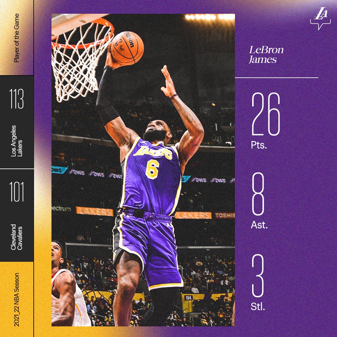 Carmelo Anthony en Russell Westbrook kwamen respectievelijk tot 24 en 19 punten. Na twee nederlagen op rij in het seizoensbegin en nog een derde verliespartij eerder deze week, zijn de Lakers dankzij de derde zege van het seizoen opgeklommen naar de negende plaats in de Western Conference.
