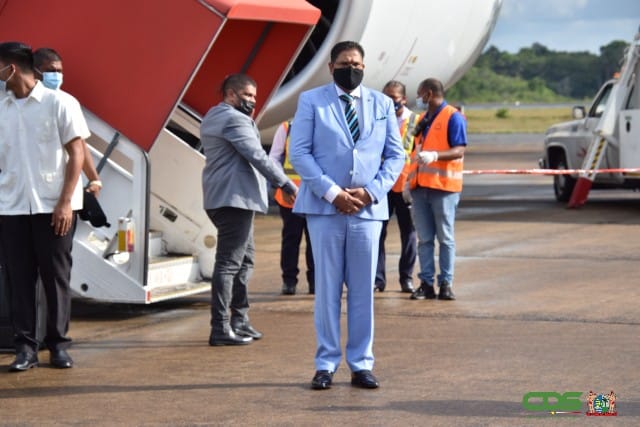 Woorden van president Chandrikapersad Santokhi nadat hij donderdag was teruggekeerd van de VN Klimaattop COP26 in Glasgow, Schotland. Het staatshoofd werd bij daar vergezeld door de ministers Silvano Tjong-Ahin van Ruimtelijke Ordening en Milieu (ROM), Albert Ramdin van Buitenlandse Zaken, International Business en Internationale Samenwerking (BIBIS) en Armand Achaibersing van Financiën en Planning.