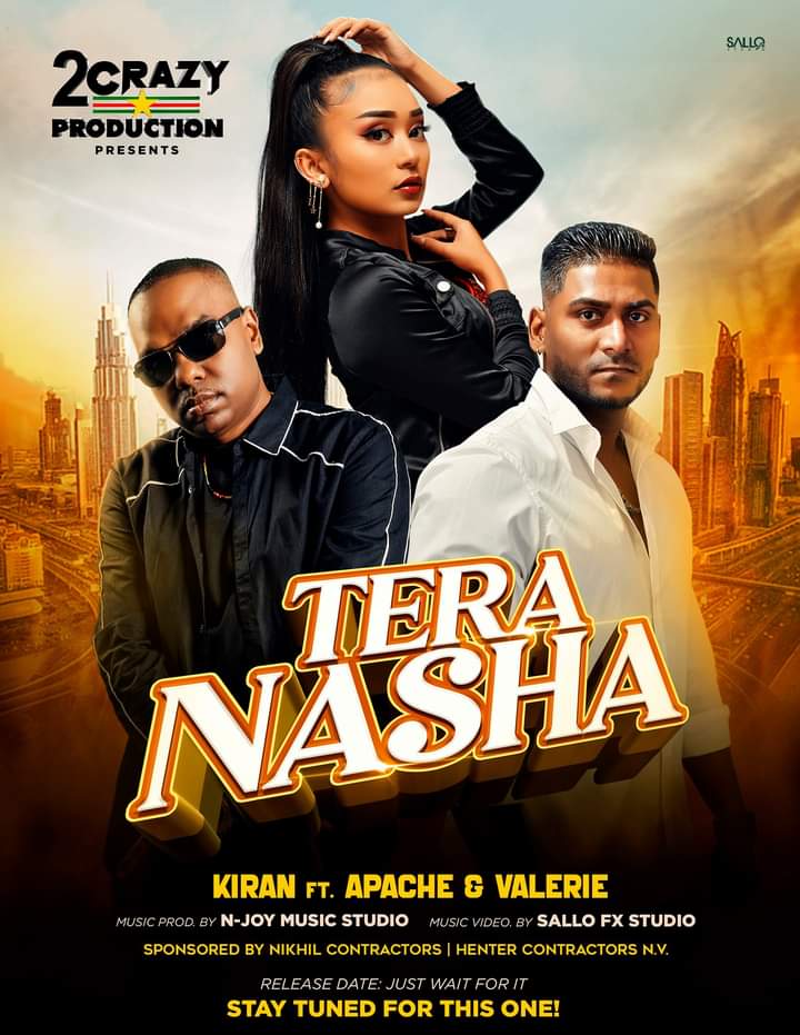 De Surinaamse artiesten Kiran Ramgoelam, Angel Valerie en Apache Waria zijn een samenwerking aangegaan voor de nieuwe cover song ‘Tera Nasha’. Het nummer is op 6 november gelanceerd met een bijbehorende clip.