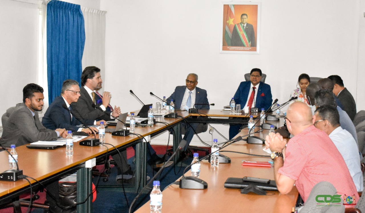 Het staatshoofd heeft de directie en Raad van Commissarissen (RvC) van SLM en vertegenwoordigers van de N.V. Luchthavenbeheer ontvangen op zijn kabinet. Tijdens het bezoek werd de president geïnformeerd over de lease van het A330 vliegtuig.